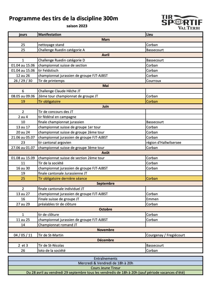 Vous pouvez retrouver le programme de la saison 2023 ci-dessous et en tout temps sur la page dédiée. Les entraînements de JT se dérouleront tous les vendredis de 18h00 à 20h00.